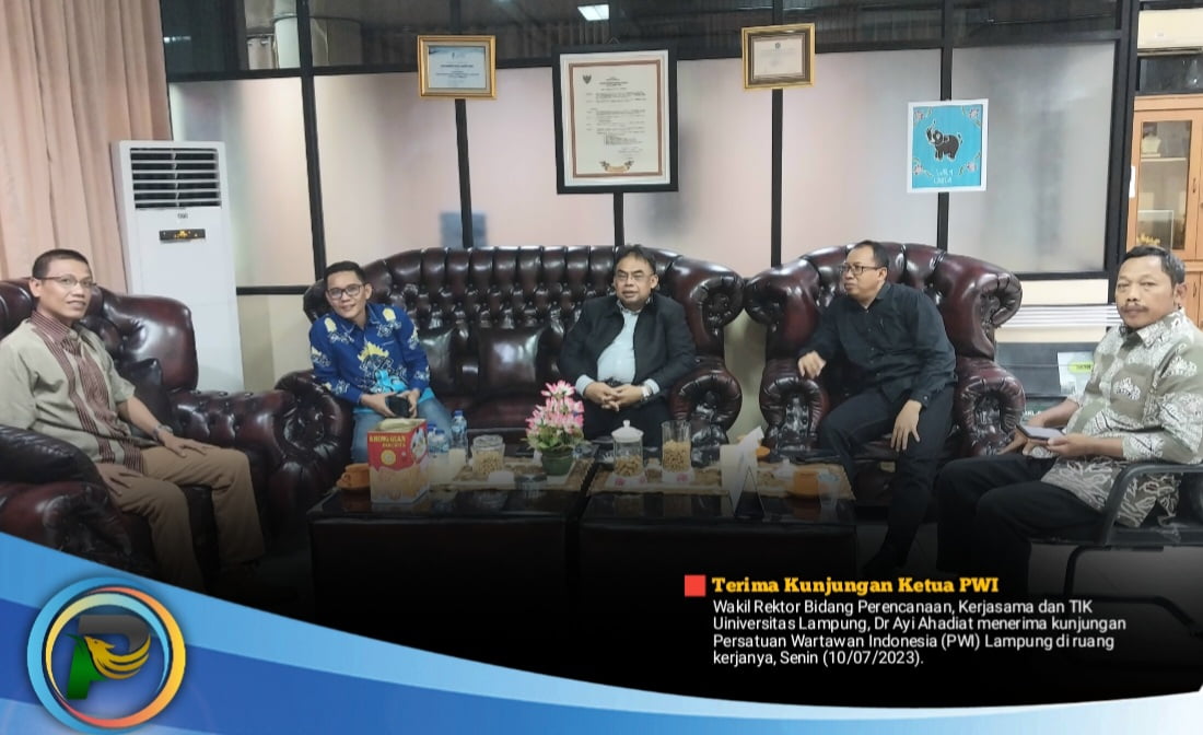 psiaceh.or.id/ – Wakil Rektor Bidang Perencanaan, Kerjasama dan TIK Uiniversitas Lampung, Dr Ayi Ahadiat menerima kunjungan Persatuan Wartawan Indonesia (PWI) Lampung di ruang kerjanya, Senin (10/07/2023).